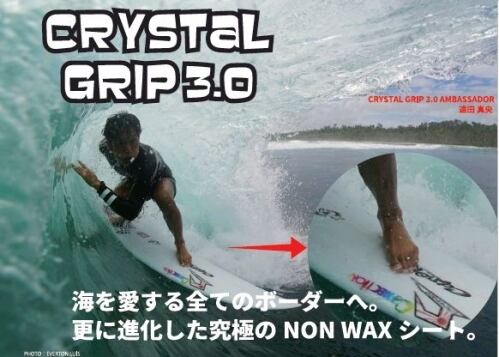 クリスタルグリップが新しく3.0として再始動を開始いたしました。 ライダー達のフィードバックをもとに商品化!従来型より薄くなり軽量化に成功。 こだわりの日本製で柔軟性、耐候性のあるPVCを使用しており、 海水や紫外線を浴びても劣化しにくい素材。 【ブラックホールとは?】 フラットシートにホール(穴)加工を施す事により、ショートボードでの激しいアクションにも対応し、ロングボードでのウォーキング、ノーズアクションにも最適です。グリップ力アップと同時に水はけ性能も向上し、ウェットスーツ着用時にもボードとウェットの間に水膜が出来て身体が浮く現象が起きにくくなります。 MADE IN JAPANの品質を誇るクリスタルグリップ ブラックホールバージョンはスリーエム ジャパンとマニューバーライン社との共同開発商品です。 【1シートサイズ】105mm×350mm。