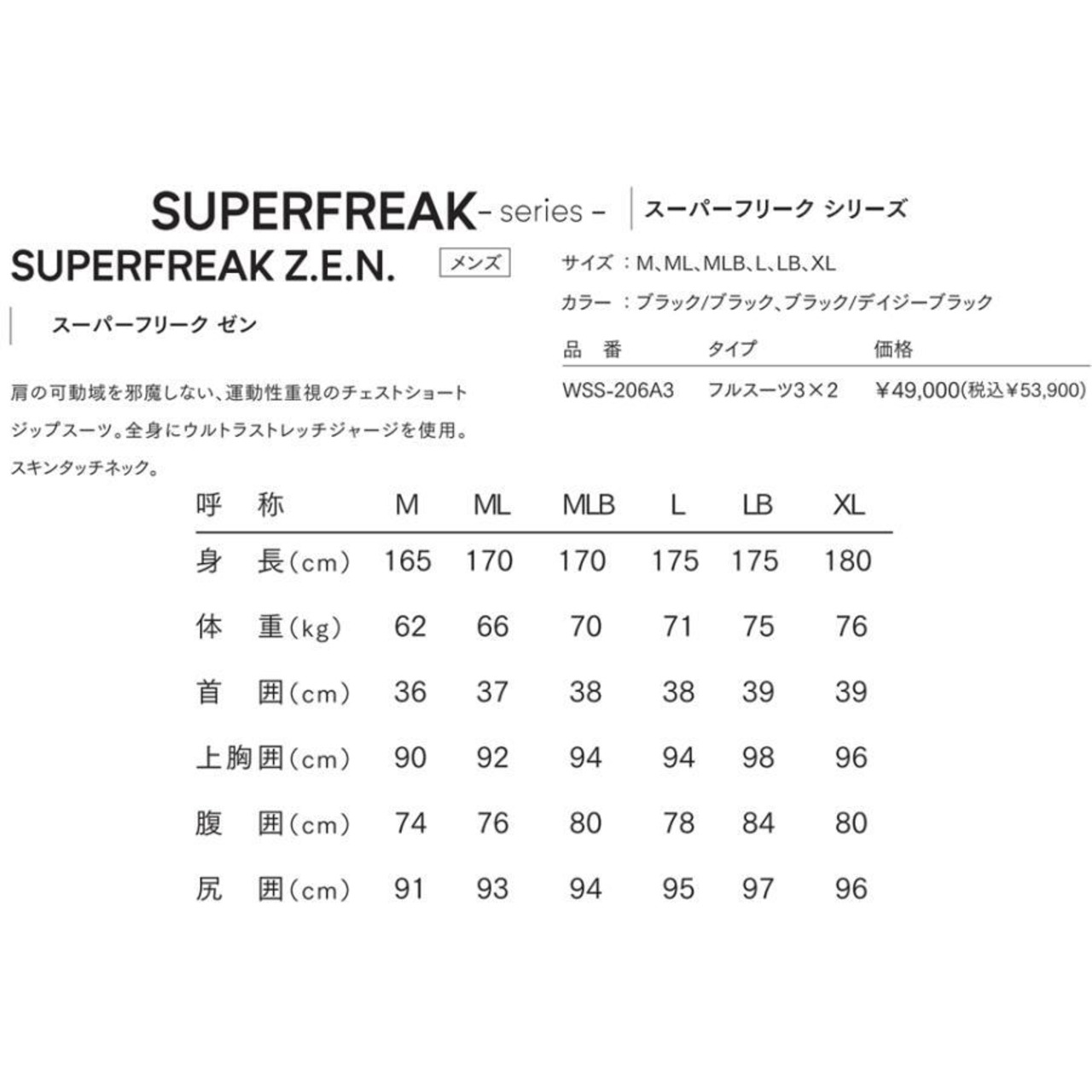 予約商品 日本正規品 フロントショートファスナーゼンジップ 3×2mm フルスーツ ■SUPERFREAK series■ 最新のテクノロジーを驚きのコストパフォーマンスで送り出すスーパーフリークシリーズ。 スタイルや用途にあわせてベストな開口デザインを選択可能ソフトな肌触りの「ファイアーウォール」起毛素材を裏面全身に使用。 吸水率の低いナイロン糸を使用し脱水性が良く乾きが早い。 さらに、リサイクルされたペットボトルが紡がれている。 この合成繊維は温室効果ガスの排出が少なく、水とエネルギーを節約することが出来ます。 既製サイズ、限定カラーの限定既製生産品。 【SUPERFREAK FSC】 肩の可動域を邪魔しない、運動性重視のチェストショートジップスーツ。全身にウルトラストレッチジャージを使用、スキンタッチネック。胸中部に配置されたストレッチ・ファスナーが着脱しやすい広い開口を確保し、 肩甲骨の動きを最大限に発揮できる。 ドライネック仕様。ドレインシステム付き。3×2mm厚。